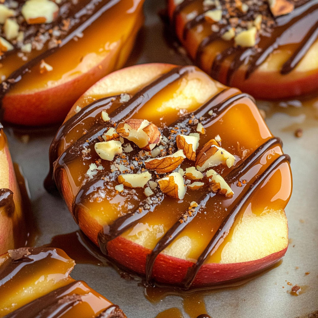 - Chocolate Drizzle: After coating with caramel, drizzle melted dark chocolate over the slices for an indulgent touch.