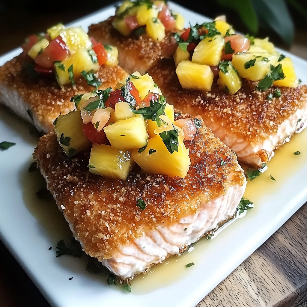 Coconut Crusted Salmon with Pineapple Salsa is not only visually stunning but also deliciously versatile. This recipe allows you to impress family and friends while enjoying a healthy meal. Feel free to customize your salsa or experiment with different sides!