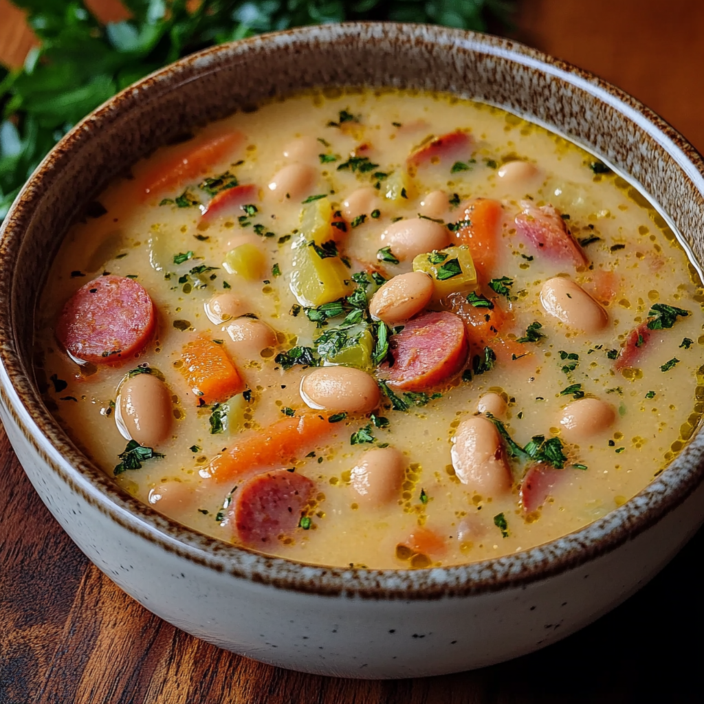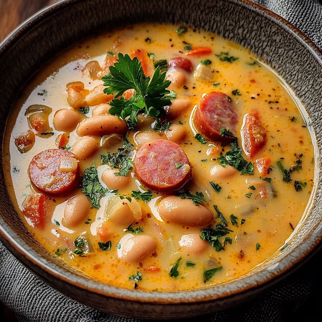 Now you have a comforting bowl of Creamy Bean Soup with turkey sausage ready to enjoy! Serve hot and garnish with parsley for an added touch of freshness.