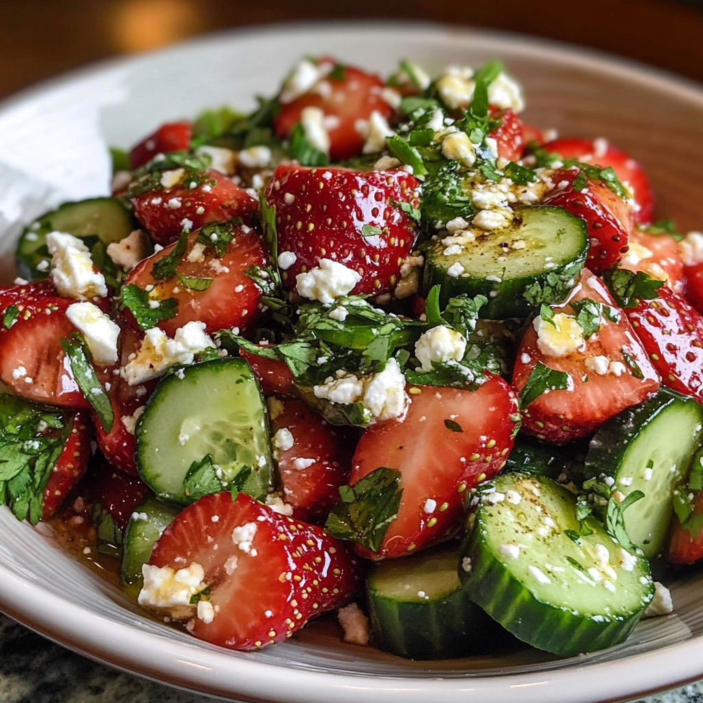 Cucumber Strawberry Salad is a refreshing and vibrant dish perfect for summer gatherings. This easy-to-make salad combines the crunch of fresh cucumbers with the sweetness of juicy strawberries, creating a delightful balance of flavors. Ideal for picnics, BBQs, or light lunches, this salad can be customized to match your preferences by adding nuts or herbs. With its colorful presentation and wholesome ingredients, Cucumber Strawberry Salad not only pleases the palate but also makes for an eye-catching centerpiece on any table. Enjoy this seasonal dish that’s as nutritious as it is delicious!