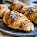 These indulgent almond croissants are buttery, crisp on the outside, and filled with a rich almond cream that’s slightly sweet and nutty. Finished with a light syrup, sliced almonds, and a dusting of powdered sugar, they make a bakery-style treat perfect for breakfast, brunch, or dessert.