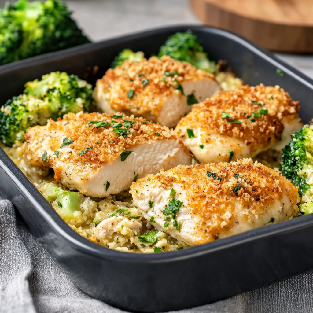 Bake on the center rack for about 25 to 30 minutes. The chicken is done when it reaches an internal temperature of 165°F and the topping is golden brown. If needed, loosely tent with foil if browning too quickly.