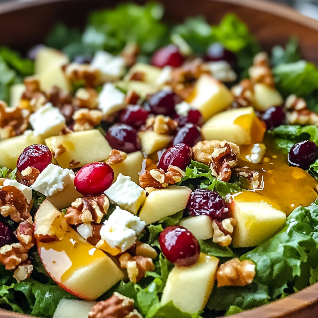 Festive and Delicious Apple Cranberry Walnut Salad with Easy Dressing is a vibrant and refreshing dish that brings together the sweetness of apples, the tartness of cranberries, and the crunch of walnuts. This salad is not only visually appealing but also packed with flavor, making it an excellent choice for various occasions such as holiday gatherings, family dinners, or even a light lunch. Its unique combination of ingredients offers a delightful contrast in textures and tastes, ensuring that it stands out on any table.