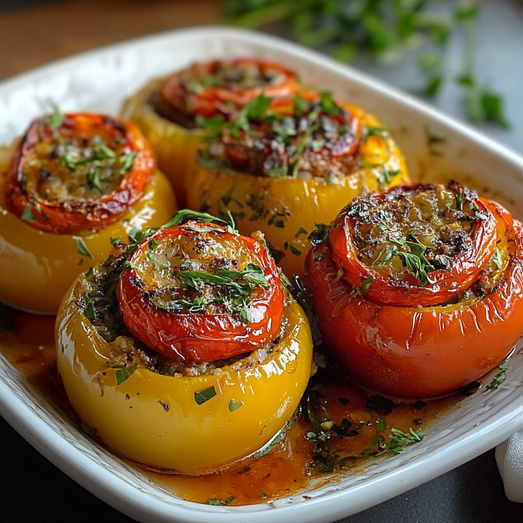 Indulge in the vibrant flavors of Greek Gemista, a delightful dish featuring fresh bell peppers and tomatoes stuffed with a savory rice and herb mixture. This oven-baked recipe is perfect for summer gatherings or cozy weeknight dinners, offering a healthy yet satisfying meal that impresses family and friends alike. With its aromatic blend of ingredients and colorful presentation, Greek Gemista is sure to become a favorite in your culinary repertoire.