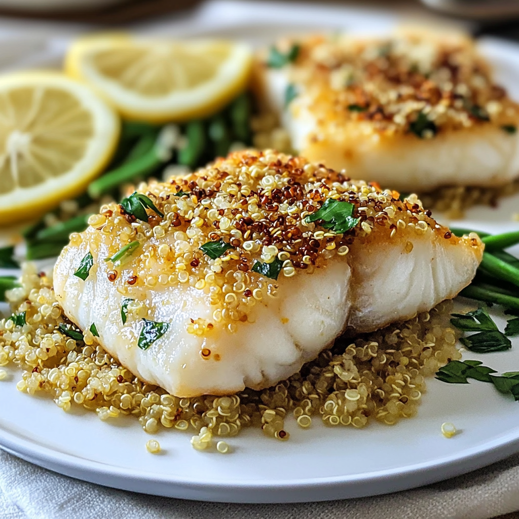 Discover the delightful Garlic Lemon Cod with Crispy Quinoa Crust recipe that elevates your seafood dining experience. This dish masterfully combines flaky cod’s tenderness with vibrant garlic and lemon flavors, …