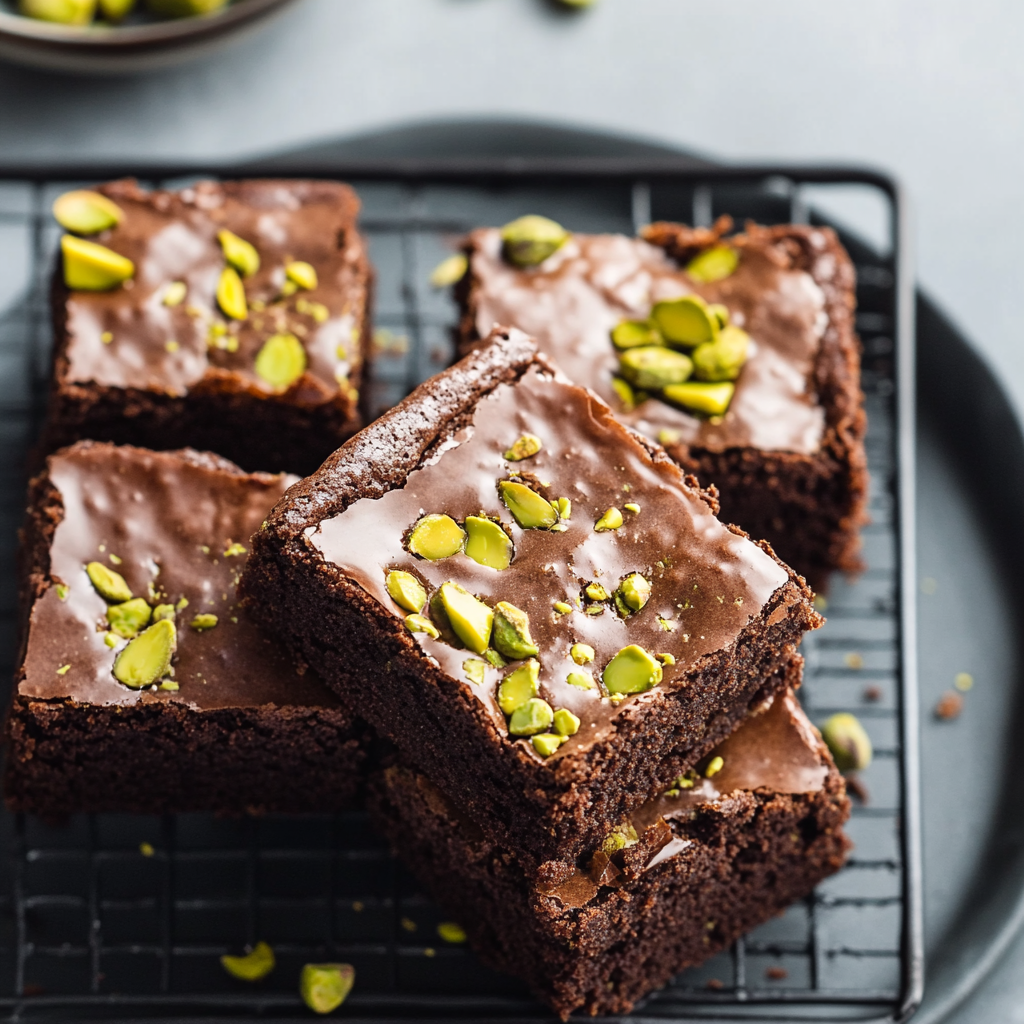 • Impressive Presentation: The vibrant green of the pistachios on top makes these brownies visually stunning.